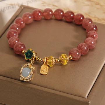 The Natural Strawberry Quartz Crystal Money Bag Charm Positive Bracelet is a piece of jewelry that features a combination of strawberry quartz crystals and a money bag charm. It is believed ...
