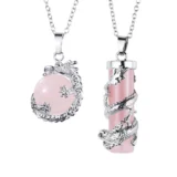 The stunning Buddha Stones Dragon Wrapped Round Ball Gemstone Couple Necklace Pendant set. This 2pc Dragon Couple Necklace Pendant set features beautifully crafted black onyx gemstone pendants, wrapped with dragon designs, on a round ball necklace chain. Perfect for couples who want to show their love and style with matching jewelry.
