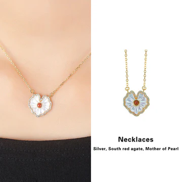 Love Heart Blessing set features tridacna stone, red agate, and lazurite, symbolizing love and blessings. This set includes earrings and a necklace, crafted from 925 sterling silver. The tridacna stone promotes peace, the red agate enhances courage, and the lazurite fosters wisdom. Ideal for those seeking emotional balance and spiritual enrichment, this set brings positive energy and heartfelt blessings.