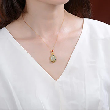 - Pendant Size: 31*15mm, Hetian Jade 13*18mm, Red Agate 4mm