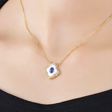 Sterling Silver Tridacna Lazurite set embodies blessings and tranquility. The Tridacna stone is known for its calming and purifying properties, while the lazurite stone represents wisdom and truth. The prismatic design symbolizes clarity and harmony. This exquisite set includes earrings and a necklace pendant, each piece crafted to inspire a sense of peace and positive energy.