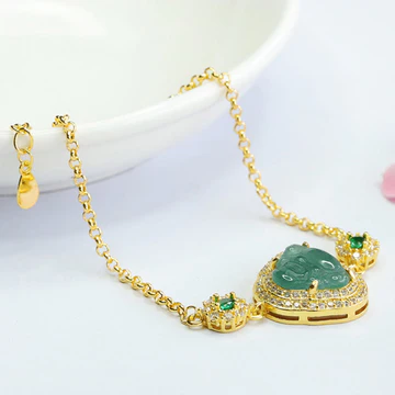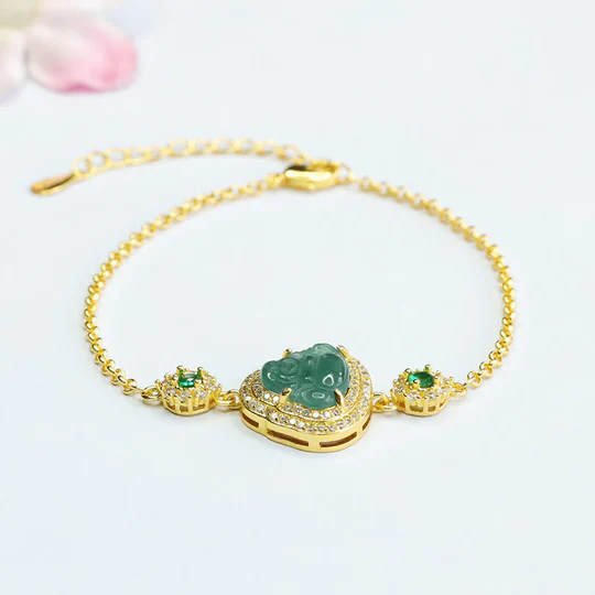 Be the first to review “Buddha Stones Laughing Buddha Green Jade Zircon Luck Chain Bracelet”