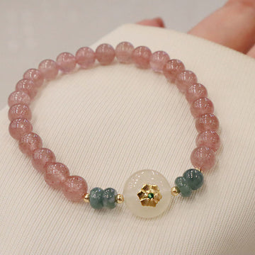 Experience love, positivity, and prosperity with the Buddha Stones Natural Strawberry Quartz Chalcedony Jade Healing Bracelet. Handcrafted with premium materials, this bracelet is a powerful tool for harmony, growth, and success.