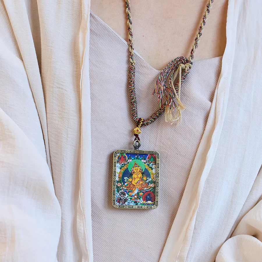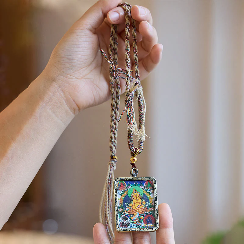 Be the first to review “Buddha Stones Tibet Five Directions Gods of Wealth Hand-Painted Thangka Buddha Serenity Necklace Pendant”