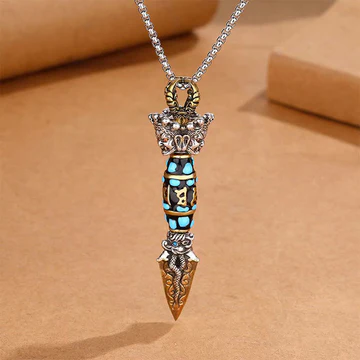 Embrace the rich Tibetan heritage with the 'Buddha Stones Dzi Bead Pendant.' Infused with the sacred "Om Mani Padme Hum" mantra and the powerful Dorje Vajra pattern, this rotatable pendant is not only a symbol of wealth but also a beacon of spirituality.