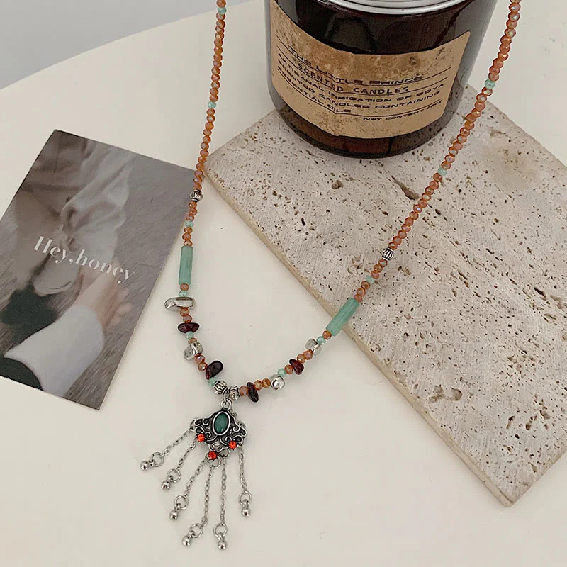 Experience the power of Copper, a conductor of positivity and abundance, with our Buddha Stones Tibetan Crystal Stone Copper Luck Tassel Necklace Pendant. Handcrafted with care for good luck and positive change.