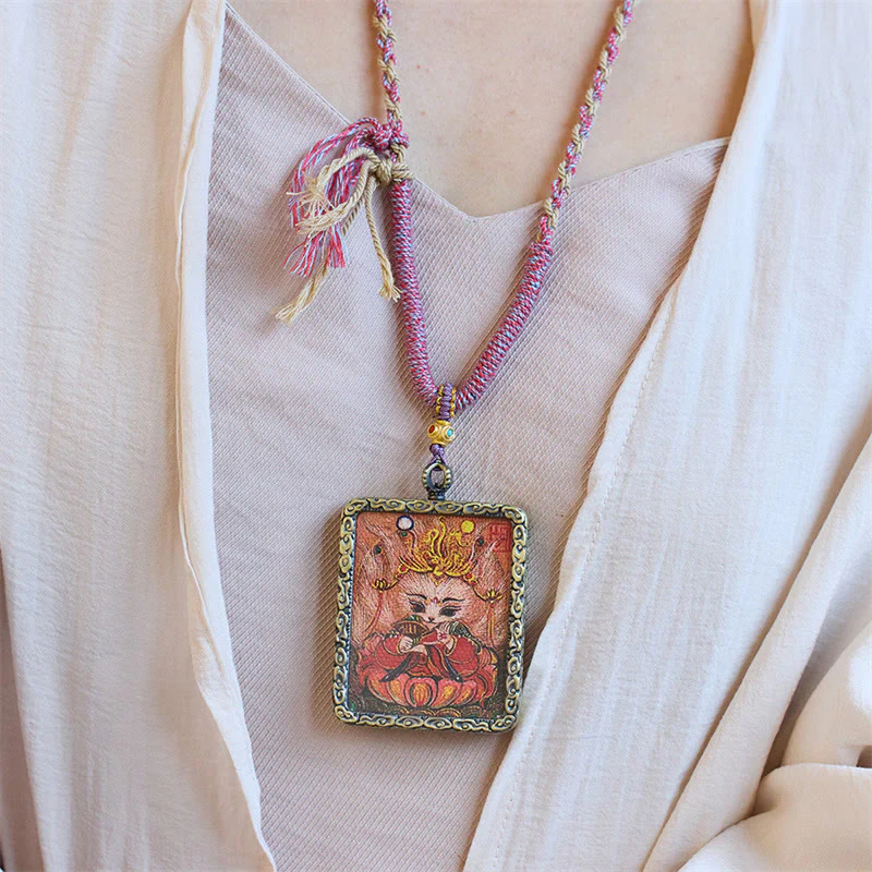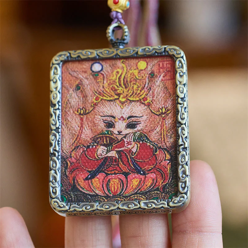 Unlock the luck, strength, and wisdom of the Nine-Tailed Fox with our Tibetan Hand-Painted Thangka Luck Necklace Pendant. This mystical fox symbolizes protection and allure. Wear it to attract love, marriage luck, and enhance your attractiveness.