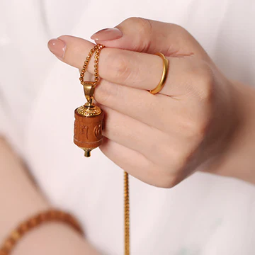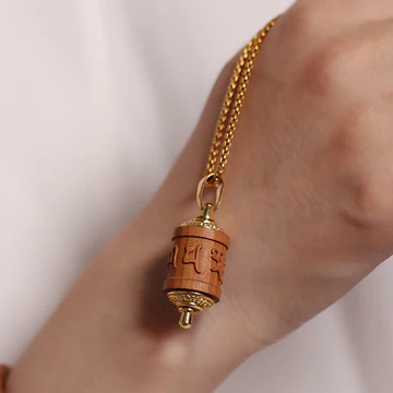 Elevate your spiritual journey with our Sandalwood Prayer Wheel Om Mani Padme Hum Necklace Pendant, featuring Buddha Stones. This pendant combines the spiritual significance of the prayer wheel with the calming properties of sandalwood, inviting protection and warding off negative energies. Wear this pendant to enhance your spiritual practice and shield yourself from harmful influences.
