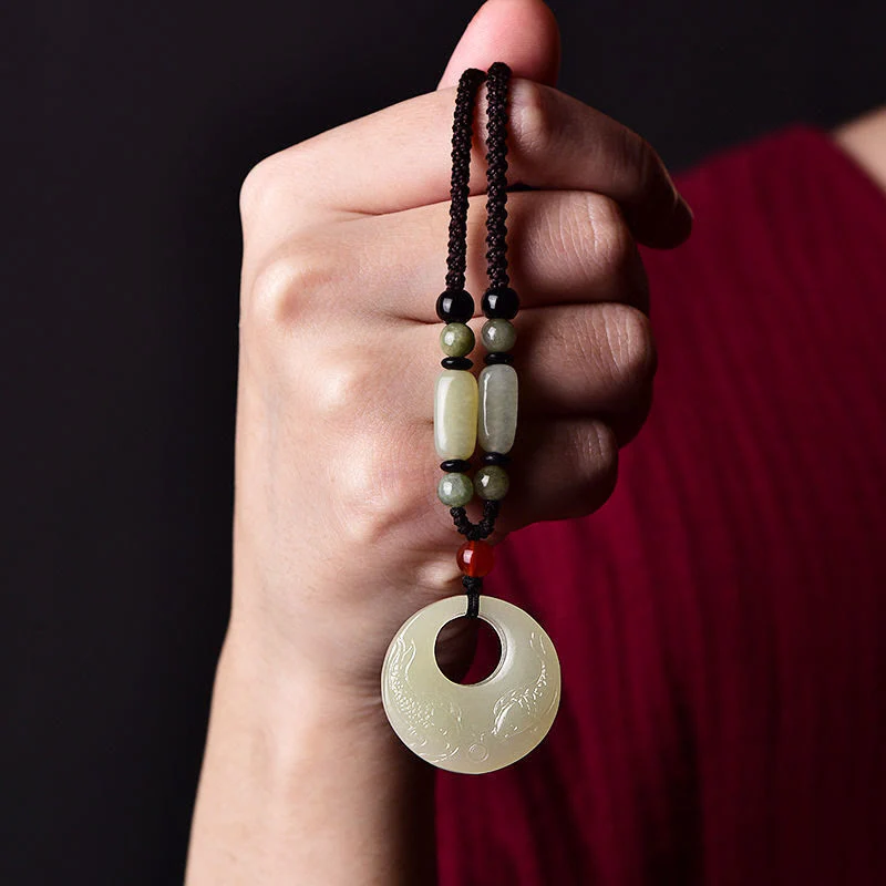 Be the first to review “Buddha Stones White Jade Double Koi Fish Carved Prosperity Success Necklace Pendant”
