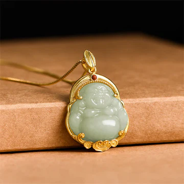 Buddha Stones 925 Sterling Silver Laughing Buddha Natural Hetian