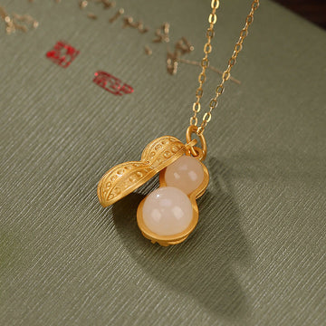 Buddha Stones 925 Sterling Silver Hetian White Jade Peanut Luck