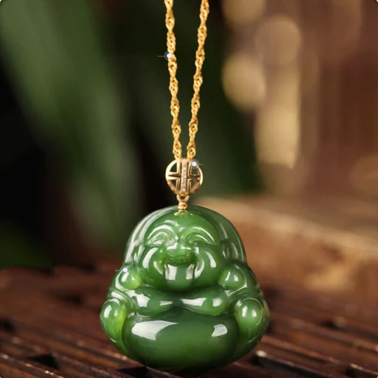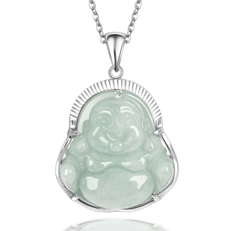 Buddha Stones 925 Sterling Silver Laughing Buddha Natural Jade A