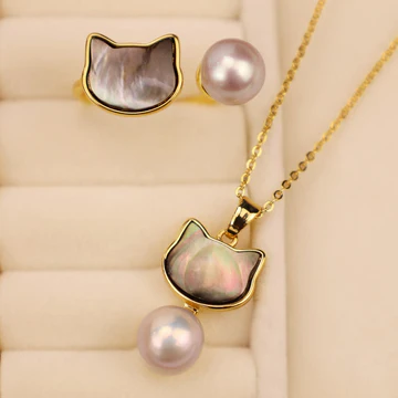 Natural Pearl Copper Cat set features a charming cat design combined with healing pearls. This delicate piece symbolizes protection and positive energy. Crafted from high-quality copper and adorned with natural pearls, ...