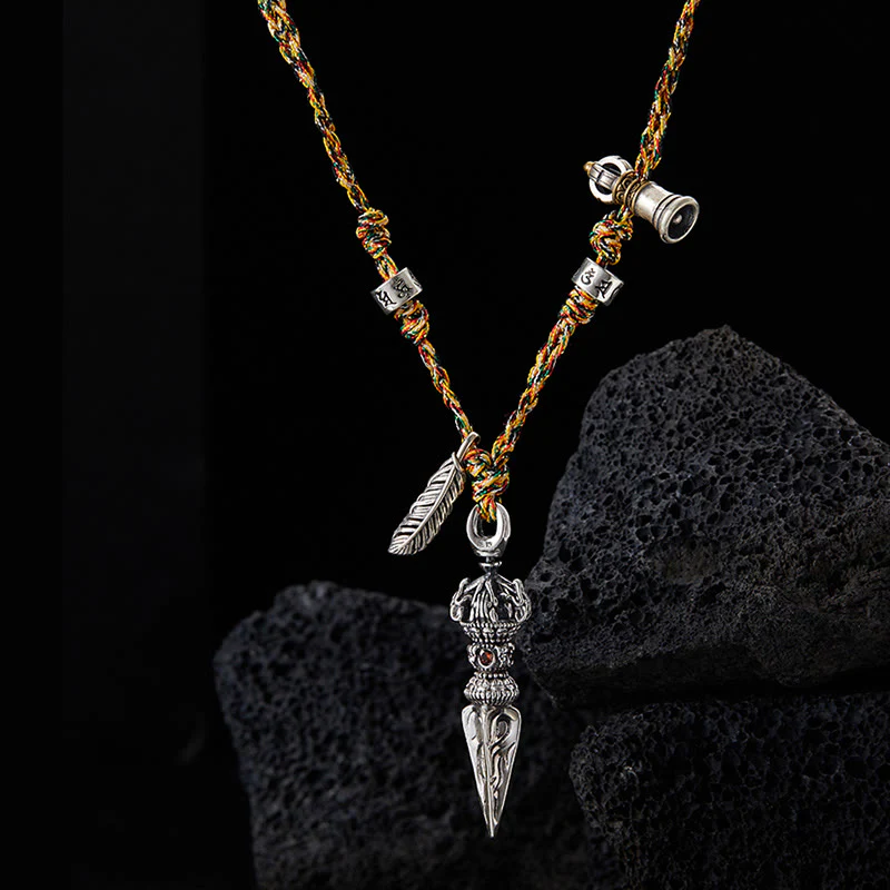 Buddha Stones Tibetan Handmade 925 Sterling Silver Dorje Vajra Om Mani Padme Hum Feather Strength Necklace Pendant